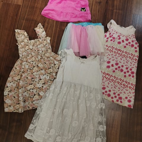 Myydään pakettina 5 kpl pitkähihaisia paitoja ja 1 kpl collegehousut, koko 110-116.