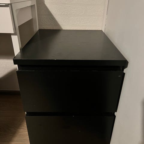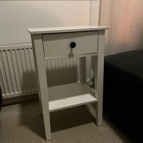 Ikean valkoinen yöpöytä kahdella vetolaatikolla. Nouto Seinäjoelta ja tarvittaessa voidaan auttaa kantamisessa.