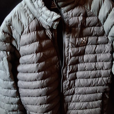 Myydään kuvien Haglöfsin erittäin laadukas ja moitteettomassa kunnossa oleva tummansininen / metsänvihreä kevyttoppatakki.