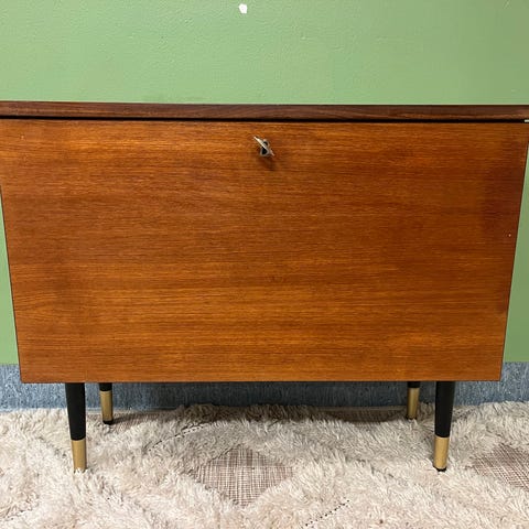 Aito vintage design baari kaappi valolla ja peilillä teak 40 50 60 lukua