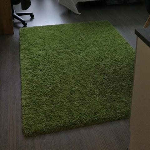 Harmaa karvalankamatto, jonka koko on 140x200 cm. Maton pinta on pehmeää tekokuitumateriaalia. Matto on vastapesty, joten se on valmis käytettäväksi sellaisenaan.