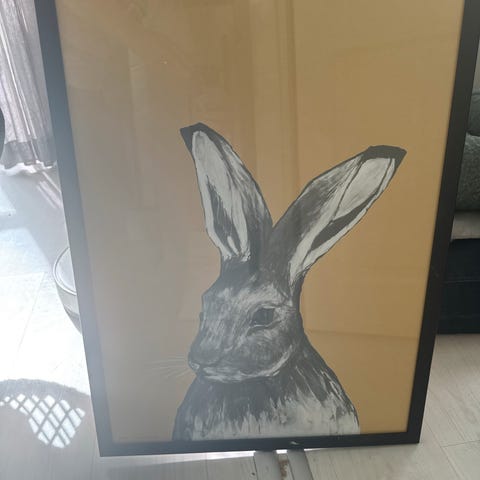Jostain verkkokaupasta aikanaan tilattu kettujuliste ja Ikean Ribba-kehykset.