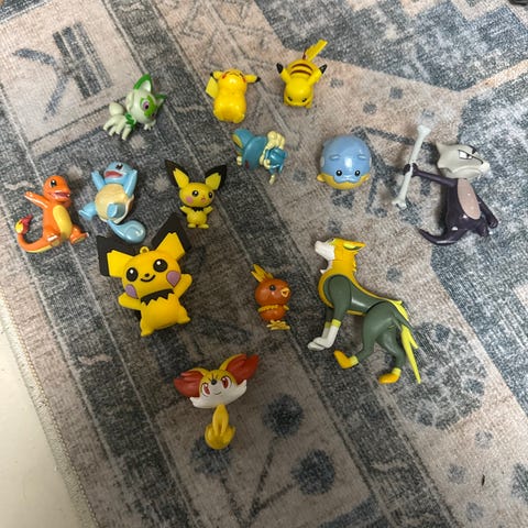 Myyntiin iso kasa Pokemon figuureja/leluja. Jokaisen pohjassa lukee joko Nintendo tai tomy. Osa kärsinyt enemmän ovat vanhoja. Hintaa aattelin 35 euroa koko setistä tai 2 euroa kappale.