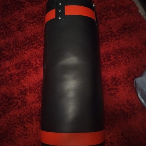 Excalibur nyrkkeilysäkki ja mukana myös Reebok nyrkkeilyhanskat.