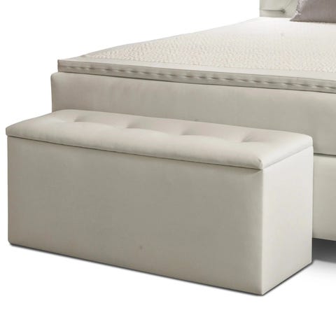 KUVAUS: Myydään myymälän mallikappaleena toiminut päätypenkki, joka on erittäin siistissä kunnossa. Pehmustettu penkki on verhoiltu kauniisti Aqua Clean Eternal kankaan kermanvalkoisella sävyllä. Penkissä on kaunis leikkaus, joka tekee vaikutelman, kuin se olisi napitettu. Aqua Clean sarjan kankaat ovat erittäin helppohoitoisia ja suurin osa tahroista on helppo puhdistaa pelkän veden avulla. Kangas on kalusteessa myrkytön ja ekologinen valinta.