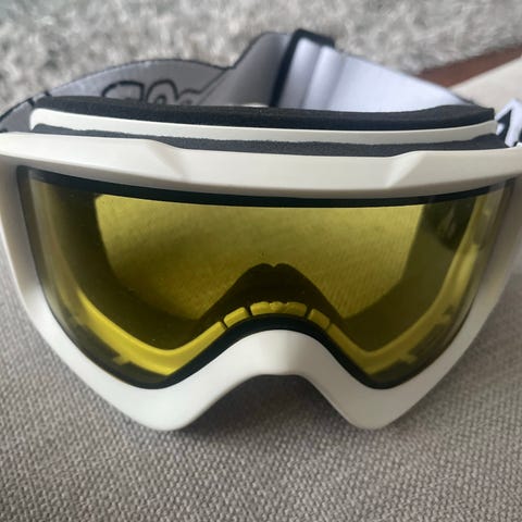 Kuvauksen mukaiset laskettelulasit, hyvässä kunnossa. Ainut naarmu laseissa kuvattuna. Korkeus 10cm ja leveys 22cm.
