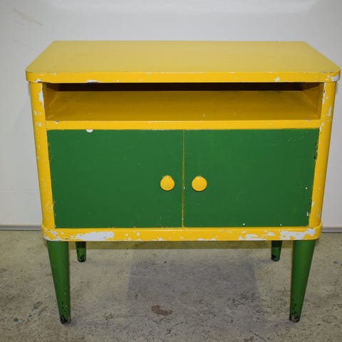 Asko Oy:n valmistama 30 luvun hienokuntoinen funkkis pikku lipasto vetolaatikolla / sivupöytä.