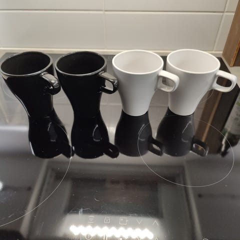 7kpl IKEA kahvikuppeja. Hyväkuntoisia, ainoastaan yhdessä mukissa kuvan mukainen pieni lohkeama.