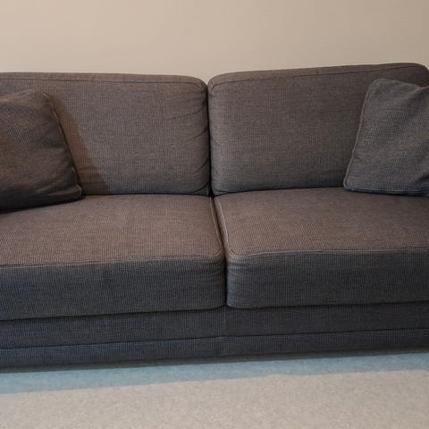 -Hyvässä kunnossa oleva 2 istuttava harmaa kangas sohva -Tyynyt ovat käännettävät -MITAT. -LEVEYS 133cm. -KORKEUS SELKÄNOJASTA LATTIAAN 68cm. -KORKEUS ISTUINOSASTA LATTIAAN 43cm. -SYVYYS 84cm. -JALKOJEN KORKEUS 12cm.