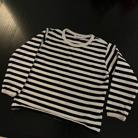 Marimekon tasaraita paita. Raitojen värit sininen ja valkoinen.
