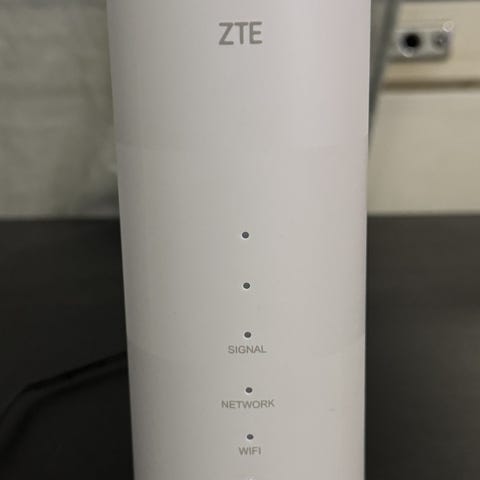 ZTE MC888 reititin, valkoinen väri. Laite on tarkoitettu langattomaan verkon jakamiseen ja sisältää Ethernet-portit. Virtapainike laitteen takana.
