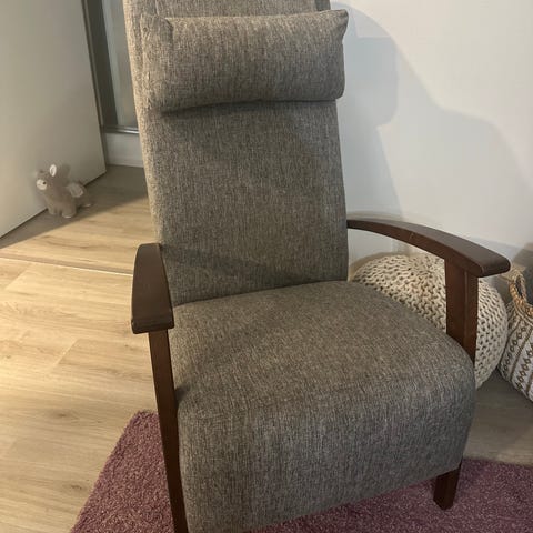 Pohjanmaan Kalusteen nojatuoli + rahi. Kunto hyvä, yksi pieni repeämä joka korjausommeltu. Kissa talous. Vain nouto.