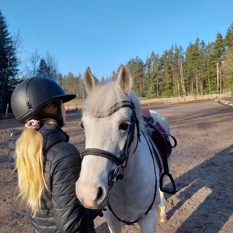 Musu on melko pienikokoinen, säkäkorkeus 95cm, joten ehdoton ratsastajan painoraja hänellä on max. 40kg mutta hoitaa voivat isommatkin lapset.😊