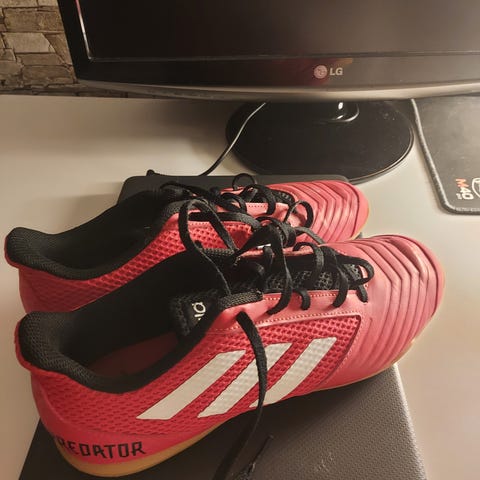 Annetaan uusien kenkien myötä käyttämättä jääneet Pro Touchin sisäpelikengät. Kunto vielä hyvä. Koon muistelen olleen 42, mutta kuluneen kokolapun perusteella voisi olla 42-43.