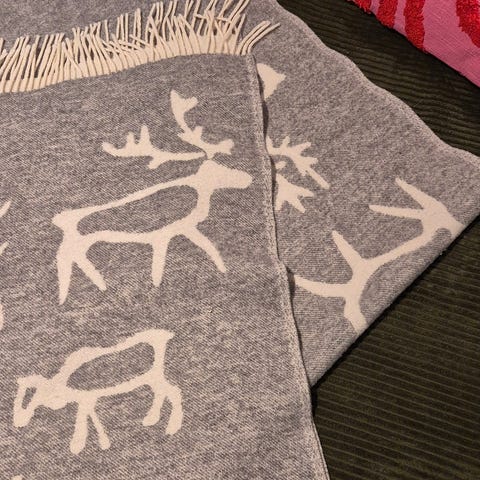 Uusi, alkuperäisin lapuin, Pentikin kassissa oleva Pentik Saaga torkkupeitto. 100% villaa.