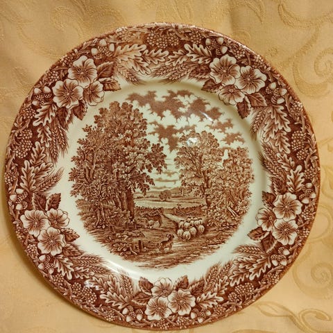 Myydään hyväkuntoinen Broadhurst Staffordshire Tudor Village 25 cm lautanen.