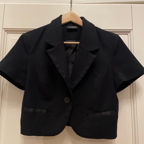 Kaunis musta hame kivalla sivuleikkauksella. Takana vetoketju ja hakanen. Liukas vuori. Pieni halkio sivulla.