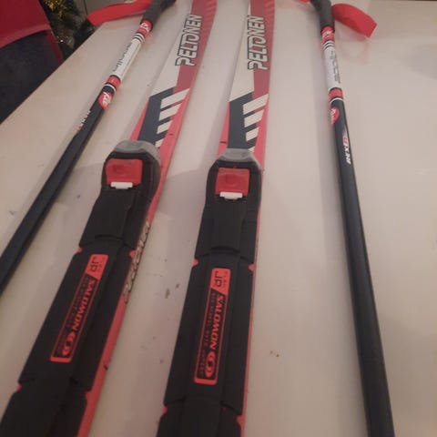 Yhdellä lapsella käytössä olleet Peltosen sukset. Hyvässä kunnossa.