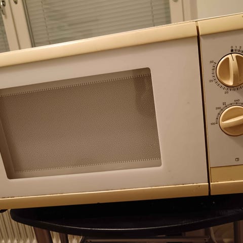 Pari vuotta mökkikäytössä ollut valkoinen Panasonic mikroaaltouuni, malli NN-E20JWM. Maksimiteho 800 W.