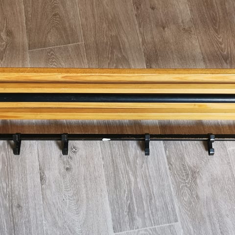 Hyväkuntoinen pieni naulakko. Leveys 50cm. Syvyys 30cm. Korkeus 23cm.