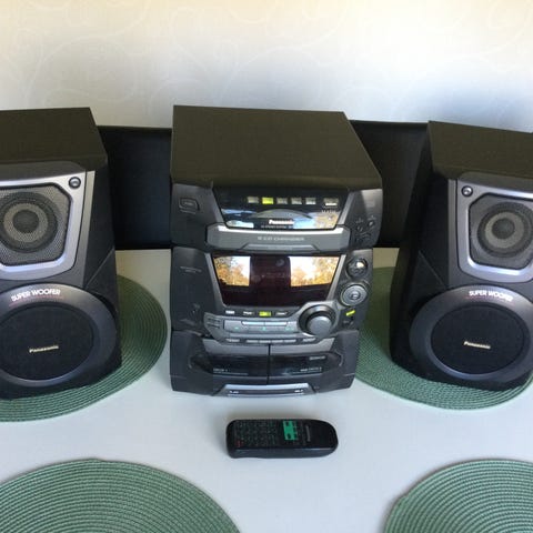 Panasonic stereosarja, joka sisältää keskusyksikön ja kaksi kaiutinta. Soveltuu äänen toistoon kotikäytössä.
