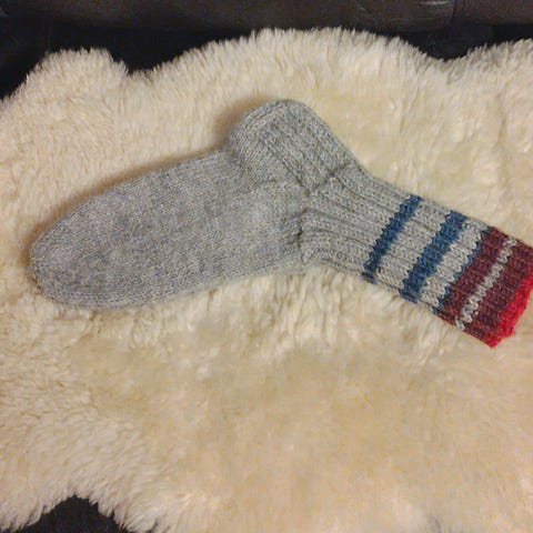 Kuvan konepesun kestävästä sukkalangasta neulotut villasukat.
