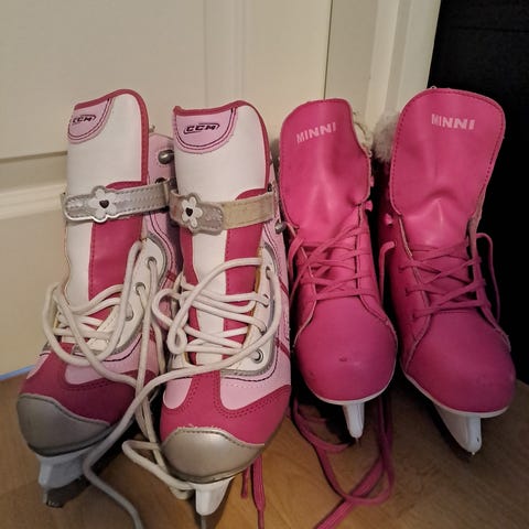 Hyväkuntoiset luistimet,vaativat varmasti kyllä teroituksen ennen jäälle menoa 😊 Teräsuojia ei ole.