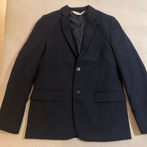 Poikien tummansininen juhlapuku kokoa 164, H&M. Materiaali 80% puuvilla, 20% pellava. Takin sisävuori polyesteria. Olkatoppaukset. Säätökuminauha vyötäröllä. Ei moitittavaa kunnossa.