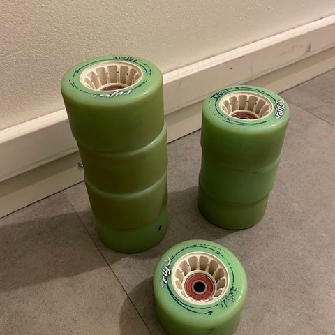 Atom poison 8kpl ja fugitive 4kpl rullat. Ok kunto, näillä on luisteltu noin vuoden verran viikottaiset treenit