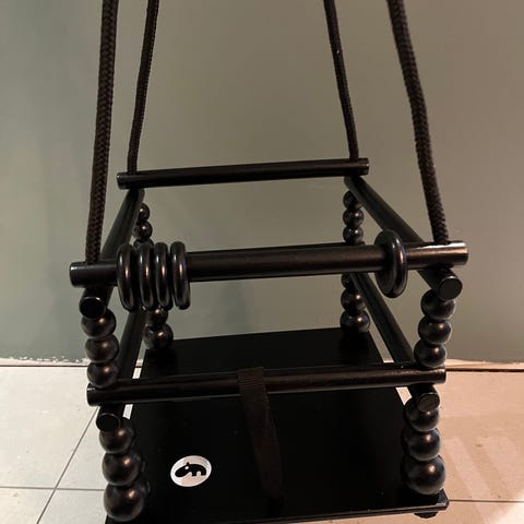 Done by Deer keinu. Valmistettu puusta ja nailonnyöriä. Sopii 1-vuotiaista ylöspäin. Enimmäispaino 30 kg. Koko 32 x 32 x 140 cm. Vain sisäkäyttöön.