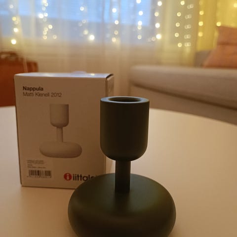 Iittala Nappula kynttilänjalka, sammaleen vihreä. Uusi käyttämätön. Myynnissä myös pienempi malli.