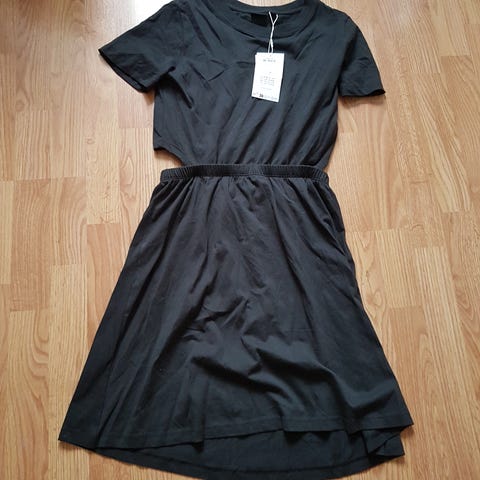 Kerran käytetty musta-valkopilkullinen trikoomekko, koko 158 (lapussa 164, mutta Reservedillä pienempi mitoitus ja vastaa pienempää kokoa). Napakkaa paksua trikoota. Kaulus puuvillaa. Uutta vastaava kunto.