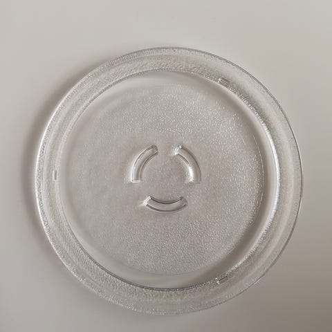 Lasinen alusta mikroaaltouuniin. Halkaisija 270 mm. Keskellä kolme pistettä oleva kiinnityskolo pyörimistä varten. Sopii moniin eri merkkien malleihin, kuten Upo, Gorenje, Galanz, Sharp, Whirlpool, Indesit, Candy, Hoover, Bosch, Siemens jne.