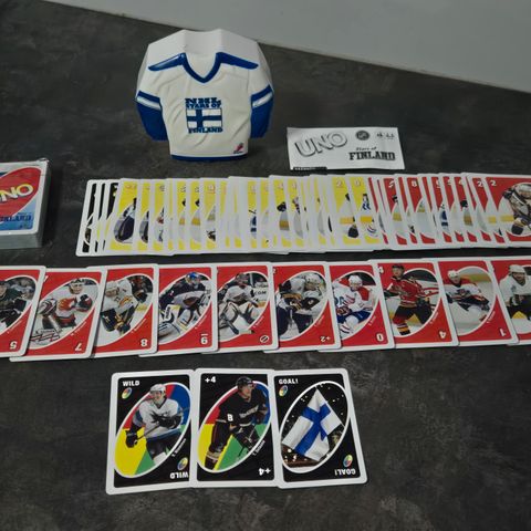 Perinteiset Uno-kortit NHL Finnish stars-teemalla. Korteissa NHL tähtien fanikuvia.