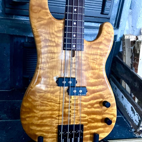 Myynnissä 35 vuotias Edwardsin nimellä ESP valmistama Les Paul basso.