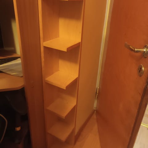 Myynnissä musta kulmahylly. Muuten siisti ja hyvässä kunnossa, mutta takaseinä pitää vaihtaa tai ottaa kokonaan pois.