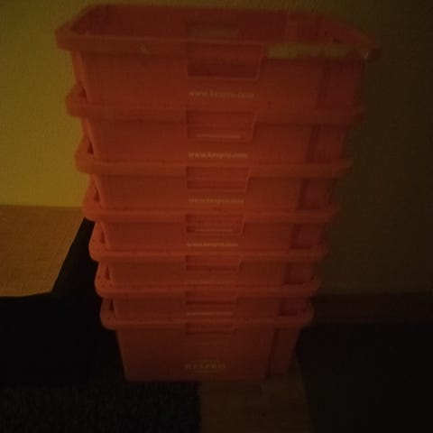 Yhteensä 30 kpl Karton ja K-Raudan muuttolaatikkoa. Laatikoiden koko 580x370x380 mm. Laatikoita käytetty yhdessä muutossa ja tämän jälkeen ne on varastoitu kuivaan ja lämpimään häkkivarastoon.