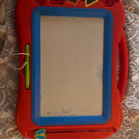 Toimii, mutta vaatii paristot. Lisäksi on myös seitsemän levyä koneeseen.