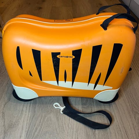 Myydään kuvan mukainen lasten Samsonite Dream2Go ”päältä ajettava” matkalaukku. Käytön jäljet näkyy kuvissa