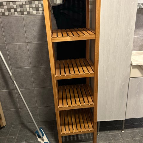 Puinen hyllykkö, jossa on neljä tasoa. Hyllykkö soveltuu erilaisten esineiden säilytykseen ja järjestämiseen. Materiaali puuta. Ollaan käytetty varastossa. Kuljetus onnistuu pientä rahaa vastaan.