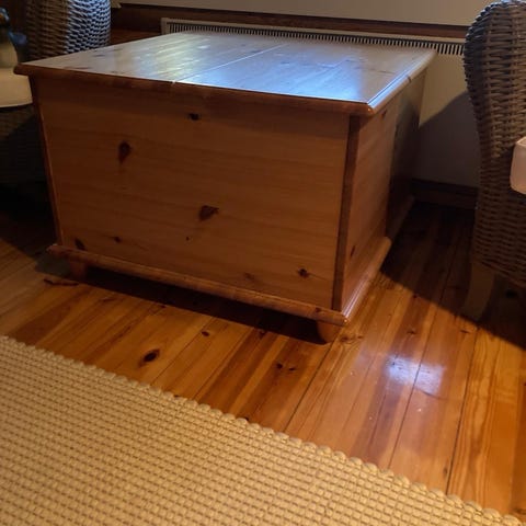 Myydään akaasiapuinen viiniarkku/sohvapöytä, meillä ollut tv-tasona. Toisessa päädyssä (viini)pulloteline, sisällä säilytystilaa. Siistikuntoinen. Kannessa kaksi vaaleampaa "laikkua", ks. kuva. Nouto Temmekseltä tai kulkeutuu omien menojen mukaan Ouluun/Ruskoon.