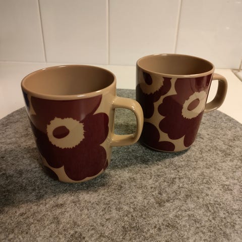 Myydään 3 kpl Marimekko unikko mukia 2,5dl. Kunto hyvä. Vain nouto