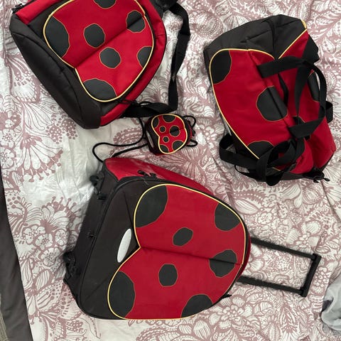 Toimii hyvin, vetoketjut toimii. Ulkonäössä käytön jälkiä, sisävuoressa reikä.