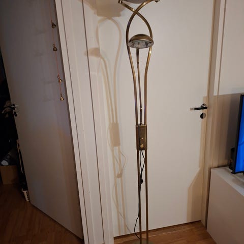 Kätevä valaisin etsii hämärää nurkkaa. Himmennettävä. Hiukan likainen, mutta saattaisi saada siistiksi puhdistuksella. Sienen tukiraudat rikki, mutta ei vaikuta käyttöön.
