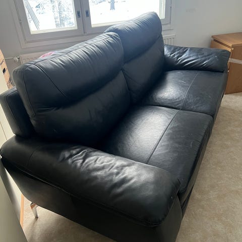 Laadukas levitettävä vuodesohva. Todella jämäkkä puurunkoinen. Vain vähän käytetty, sisätilassa varastoitu ja nahkapinta täysin moitteeton, joten sohva on erittäin hyvässä kunnossa. Istuinosa irrotetaan ja sisällä vuodenekanismi. Vuoteen patjan leveys n. 132x177. Istuinsyvyys 50 cm.