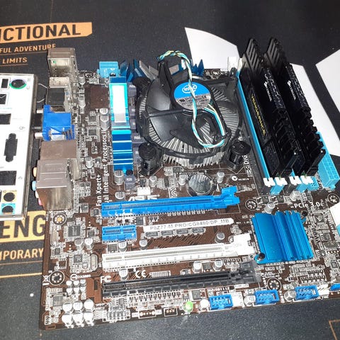 Asus emolevy ja intel prosessori tietokoneeseen. Mukana stock cooler intel.