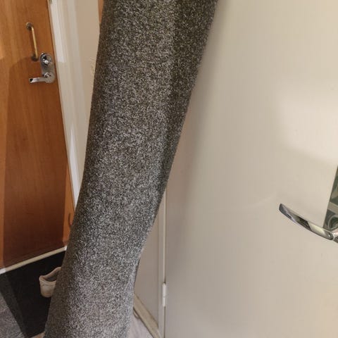 Tarpeettomaksi jäänyt mitoiltaan noin 360x134 cm parvekematto.