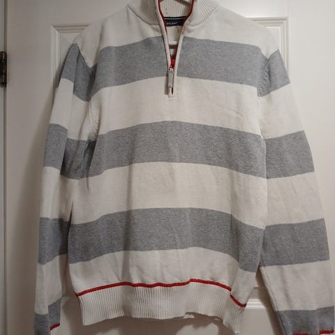Miesten punainen neulepaita, jossa V pääntie ja kaulustaite. Merkki Dressmann. Kyynärpäissä on vahvikkeet tyypillisenä koristeena. Voin myös postittaa sopimuksesta lisämaksusta 6€.
