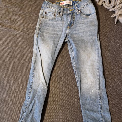 Leviksen farkut. Vyötärö (venyttämättä) n 59cm, lahkeen sisäpituus n 64cm.