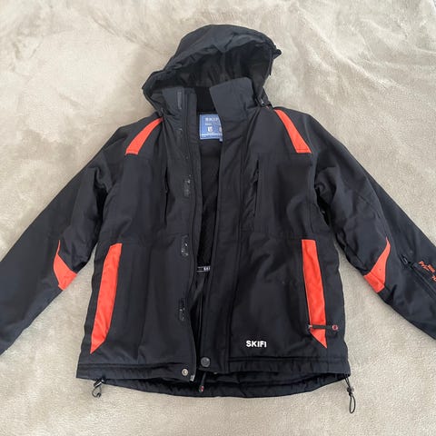 Myydään hyväkuntoinen laskettelu takki. Merkki Skifi, koko 150cm. Hihassa tasku laskettelu kortille.